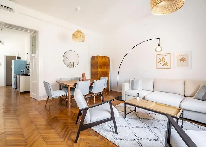 The 2-room Designer Two Bedroom Apartment Budapest is located in the 07. Erzsebetvaros district of Budapest, merely 6 minutes' walk from the Europeum Shopping Center and Parking Garage.